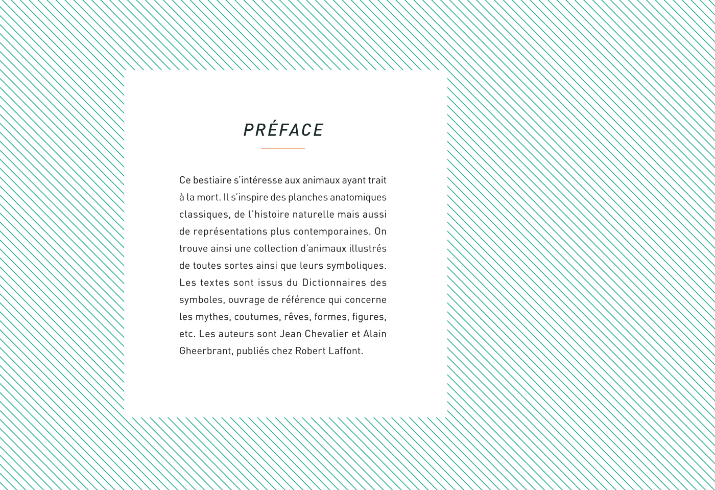 Ce projet de fin de Licence explore le rapport entre les animaux et la mort. Des extraits du Dictionnaire des symboles sont illustrés et mis en page autour de ce lien.